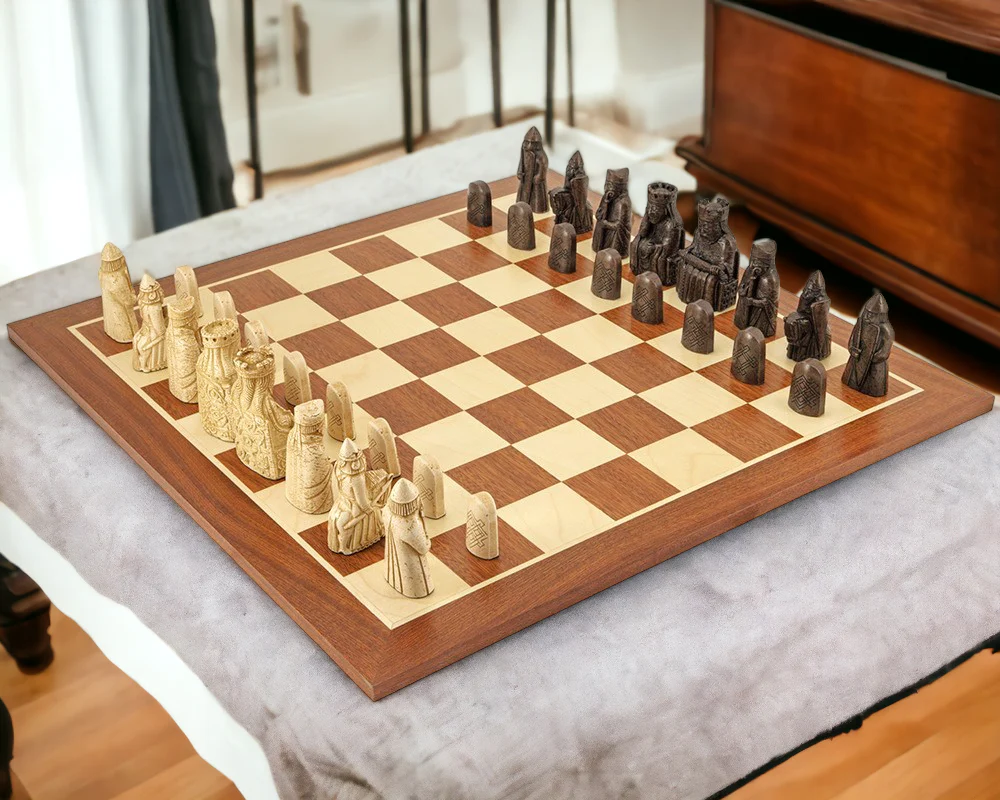 Isle of Lewis Large Chess Pieces, 19" Mahogany Board